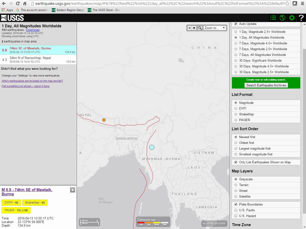 Prelim. Report M6.9 - 74km SE of Mawlaik, Burma You can report feeling the earthquake at: http://on.doi.gov/1qHTyzq pic.twitter.com/EjUwVGaqCl