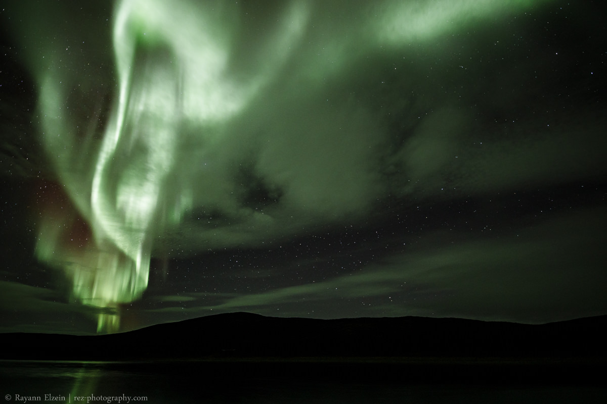 "Rarely have I seen anything like this before," says Elzein. "I double-checked the white balance on my camera to make sure nothing was wrong. But it was the same color temperature as on all my other northern lights pictures."